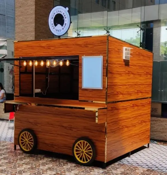 Portable Design Ideas Commercial Wooden Outdoor Coffee Drink Stands Fast Food Ordering Container Box Cart Kiosk